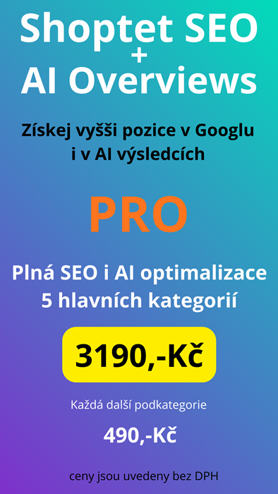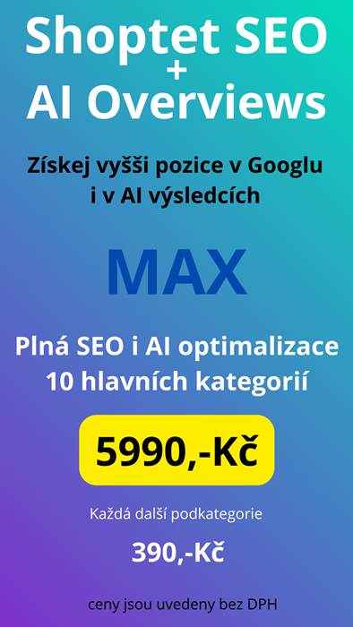Proto doporučuji využít kompletní SEO optimalizaci Shoptet e-shopu, která zahrnuje i AI Overviews optimalizaci.